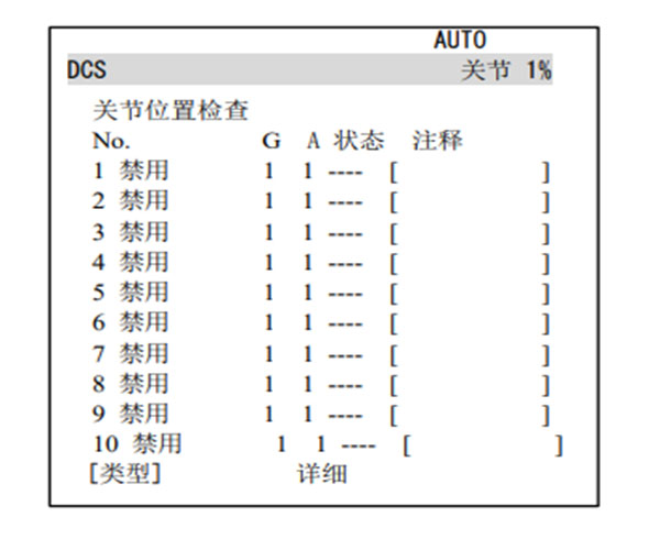 5. 將光標(biāo)指向[1 關(guān)節(jié)位置檢查],按下[詳細(xì)]。