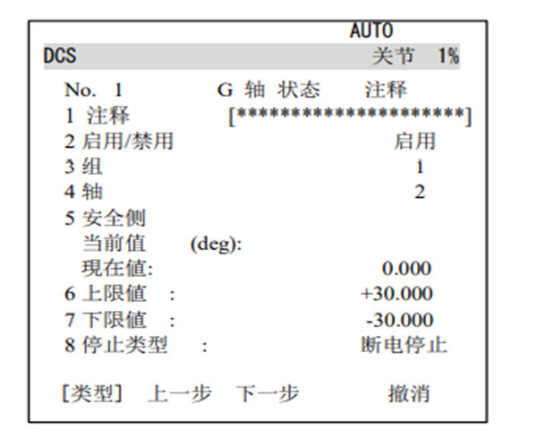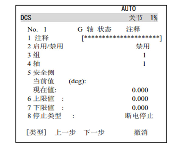4. 選擇“DCS”。出現(xiàn)各軸可動(dòng)范圍設(shè)定畫面。