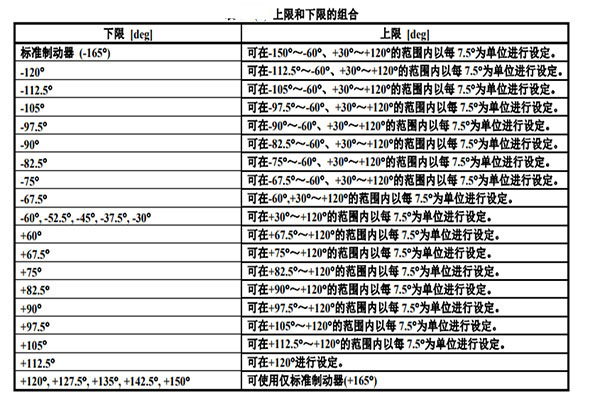 下限:設(shè)置可能范圍:可在-120°~-30°、+60°~+150°的范圍內(nèi)以每705°為單位進(jìn)行設(shè)定。