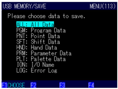 請通過光標鍵選擇要保存的數據種類,然后按下 F1