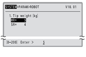 但是,當(dāng)設(shè)置的機(jī)器人為 YK120XG、YK150XG、YK180XG、YK220X 時(shí),以 0.1kg 為單位設(shè)置。