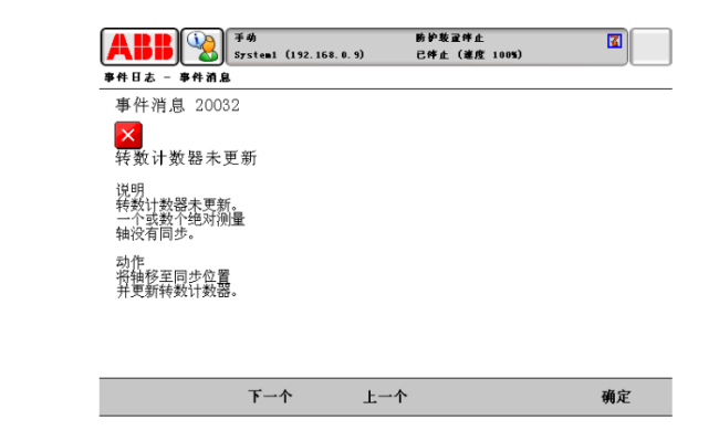 ABB機器人維修 報警代碼:20032(轉數(shù)計數(shù)器未更新)